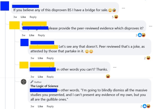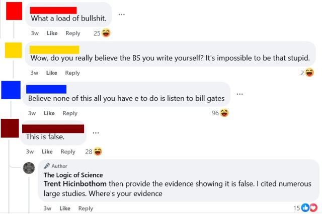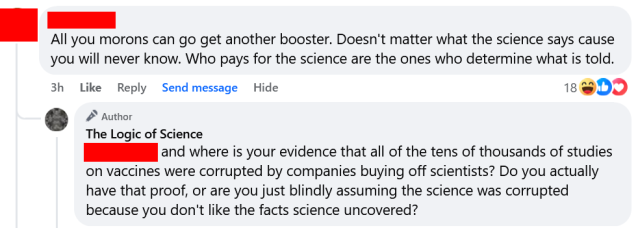 These sorts of beliefs and comments are completely out of touch with reality and contrary to the facts. They are also extremely dangerous, not only because recommendations like staying up to date with COVID boosters continue to be relevant, but also because this type of thinking affects how people respond to other scientific issues and future disease outbreaks. This erosion in the public trust in science is incredibly damaging and based entirely on lies and conspiracy theories.