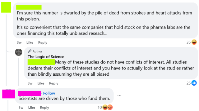 Let’s now turn our attention to the big one: vaccines. At the start, we need to clear up a few misconceptions. First, as explained here (see #10), the COVID vaccines were carefully tested prior to releasing them to the public. It is simply not true the vaccines were rushed or that scientists were pushing the vaccines before knowing if they were safe and effective. That said, now that billions of doses have been delivered, we have been able to conduct massive follow-up studies to further ensure that the original results were correct.