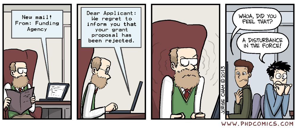 Now, you may be thinking, “well can’t you just lie and spend the money on personal stuff without telling anyone?” No, not really. First, grant money is usually locked up in institutional accounts. It doesn’t generally go into your personal account. This means that to use the money, you have to fill out purchase orders that go through your university. So there is accountability, and if you start trying to buy a bunch of clearly personal stuff, you’re going to get called on it. Second, you have to report back to the grant agency and show that you produced results. So if you spend the money on a vacation to Hawaii, you won’t have enough to do the project, which means you won’t produce results, which means that you’ll have a bad track record and won’t be able to get grants in the future. One of the things that grant committees want to see is evidence that you have spent previous grants wisely and produce high quality results. So blowing the grant on personal purchases is a really bad idea.